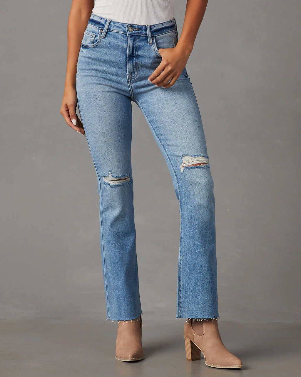 The Auggie High Rise Distressed Flare Jean is a trendy choice for your fall looks with a...