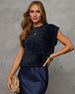 Bring a bit of softness and flair to your style with the Becka Fuzzy Knit Sleeveless Sweater...