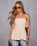 The Cadee Strapless Peplum Top brings structured ease with a bold edge. thanks to its heavyweight ribbed...