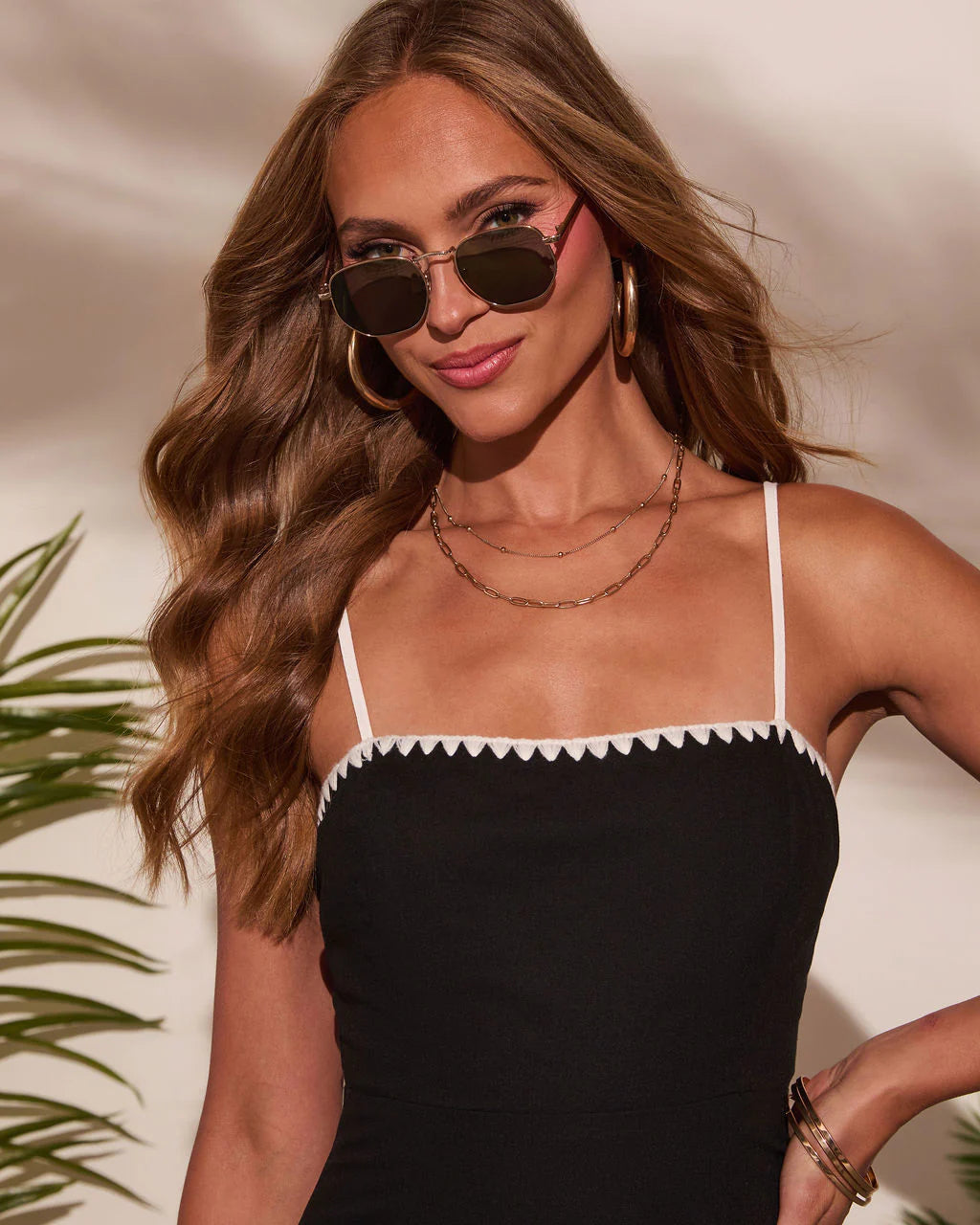 The Cailene Contrast Trim Mini Dress is where cool-girl ease meets standout style. Made from breezy linen...