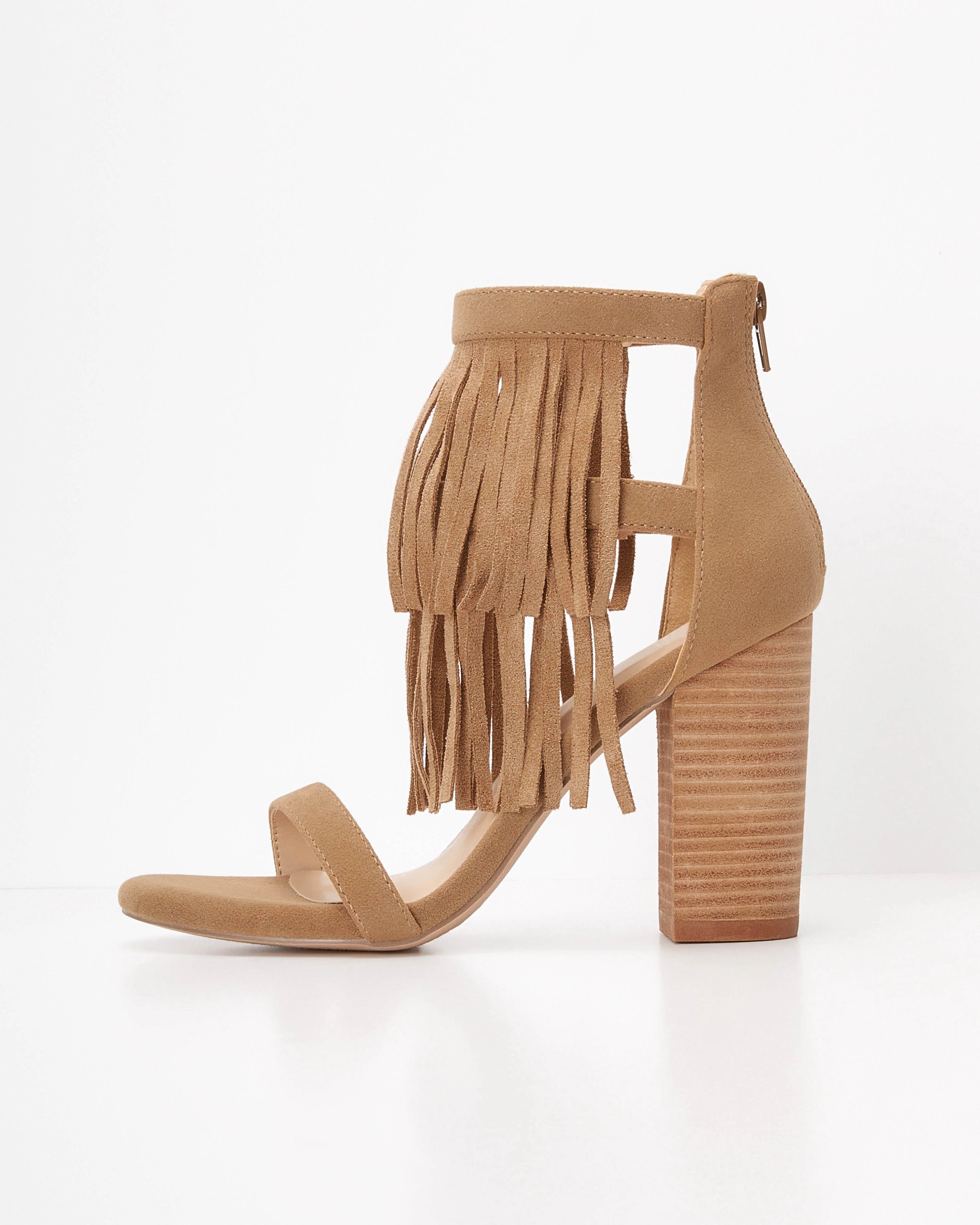 Get into the layered fringe details on this cute block heeled sandal! It's finished with a secure....