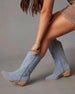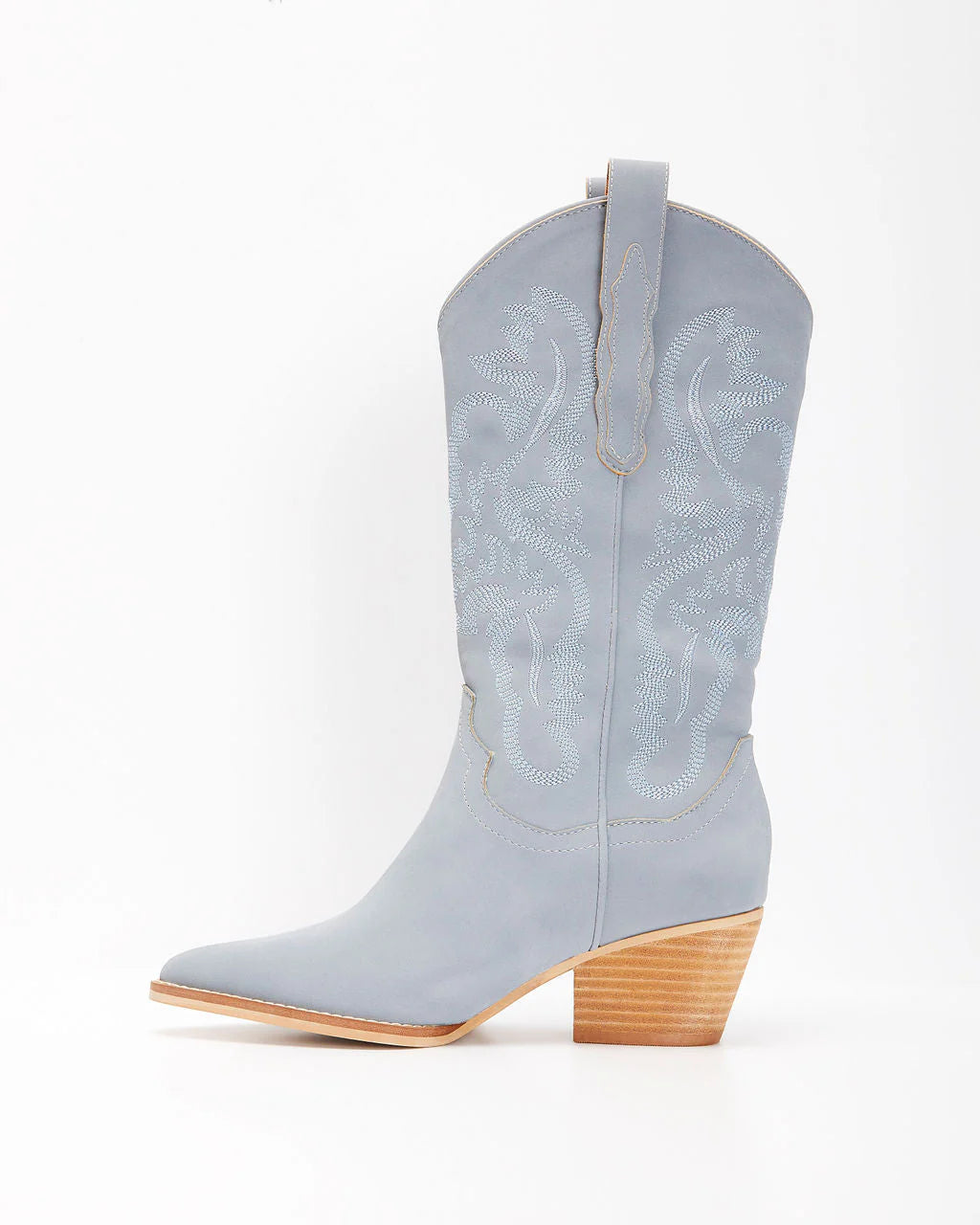 Heel Height: 2.25" Material: Man Made Materials Low Block Heel Western Embroidered Detail Pointed Closed Toe Pull...