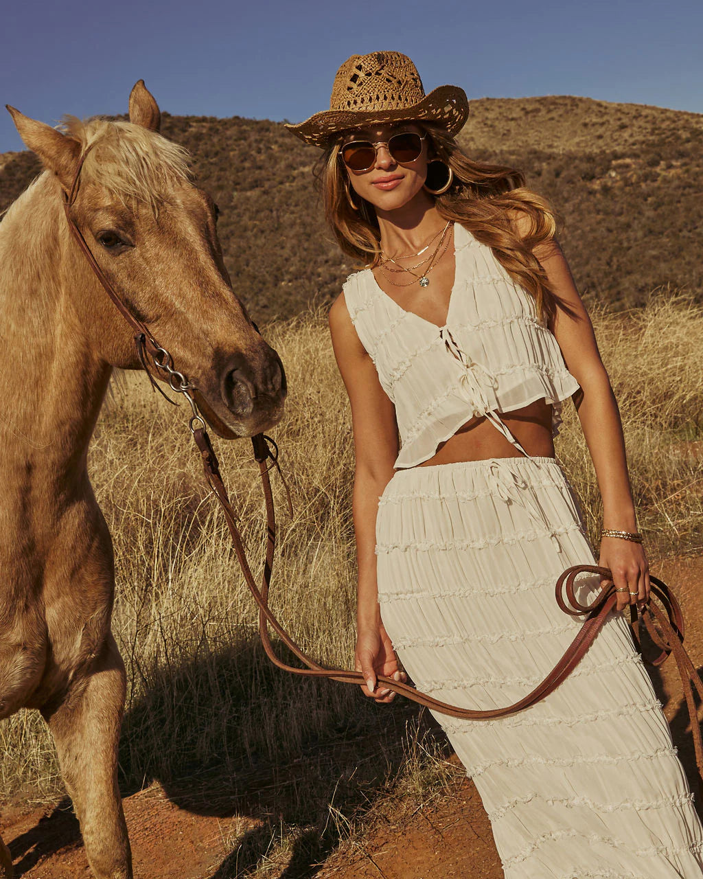 Welcome your style to new cosmic heights with the Celestial Haven Chiffon Front Tie Top. This enchanting...