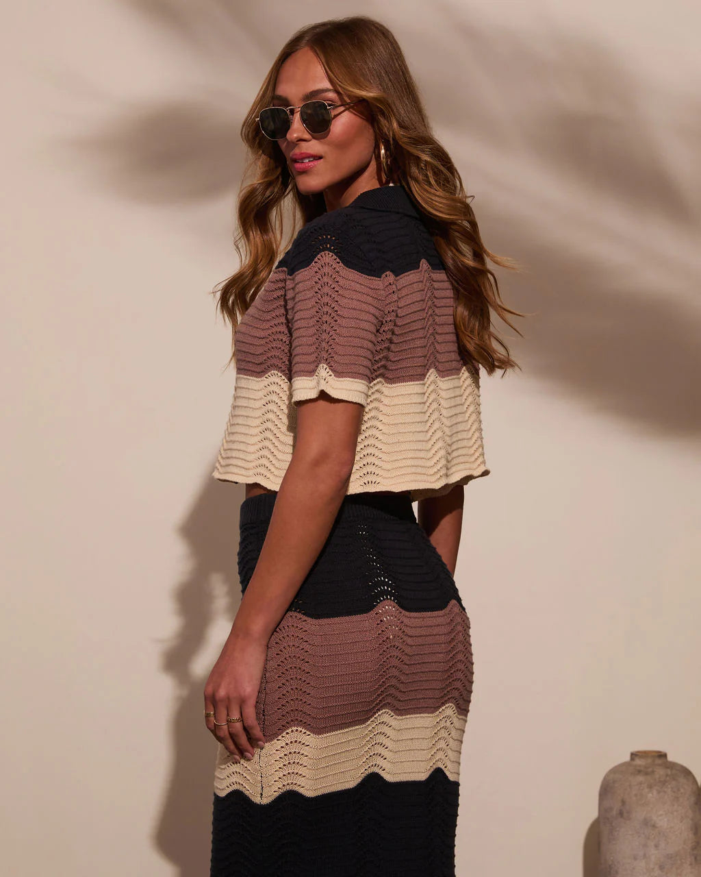 Whether you're exploring local markets or enjoying a seaside lunch. the Coastal Core Colorblock Button-Down Top brings...