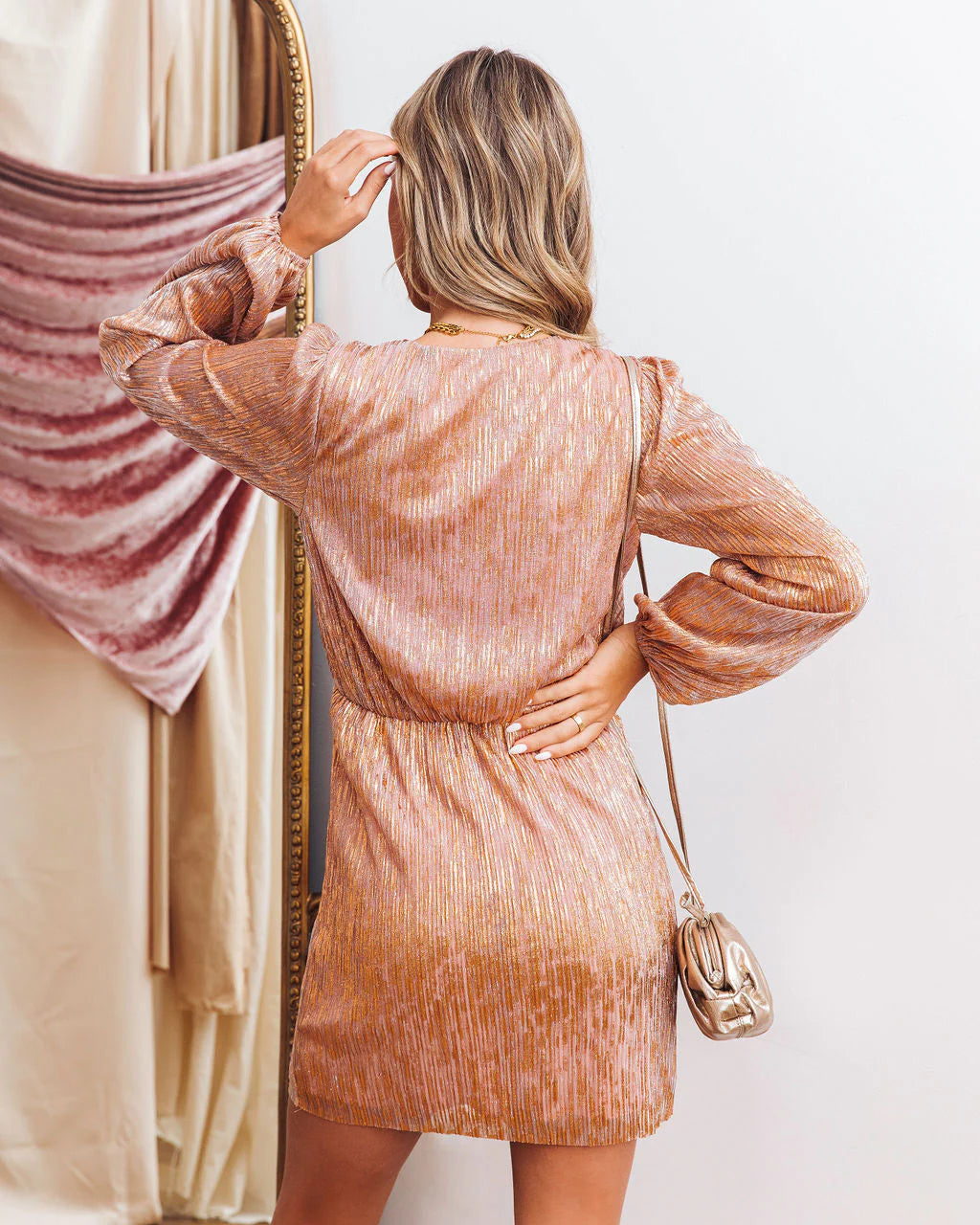 Be the star of the show this NYE in our Crishelle Twisted Front Metallic Plisse Mini Dress. Features a mint hue with gold metallic details.