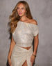 Add some shine to your look in the Dance With Me Off Shoulder Iridescent Top. This stunning...