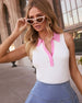 Effortless. versatile. iconic—you're going to live in the Darlene Contrast Knit Polo Top. Made of a ribbed...