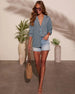 The Deep End Contrast Stripe Button Down Top is your breezy go-to for pool days. beach strolls....