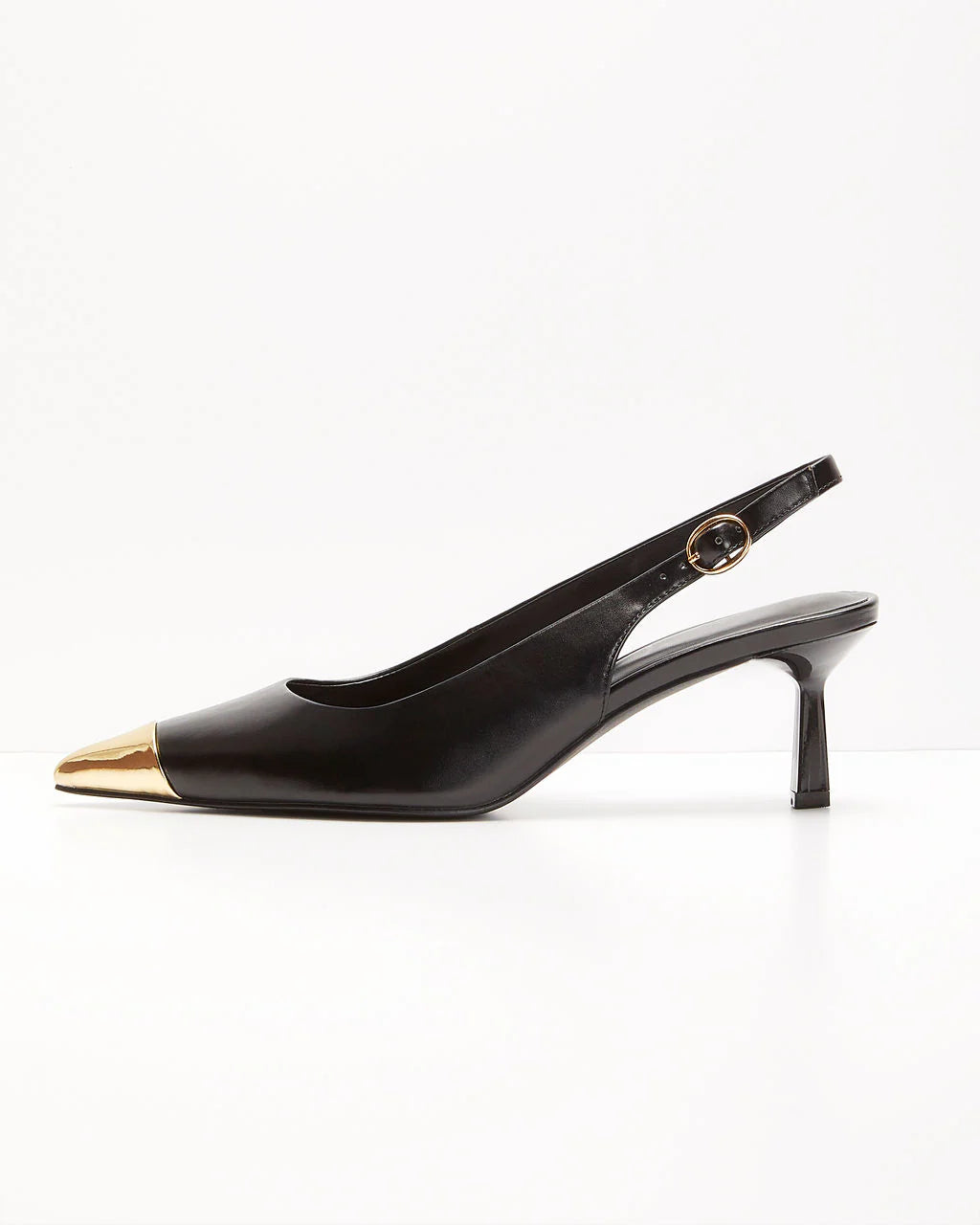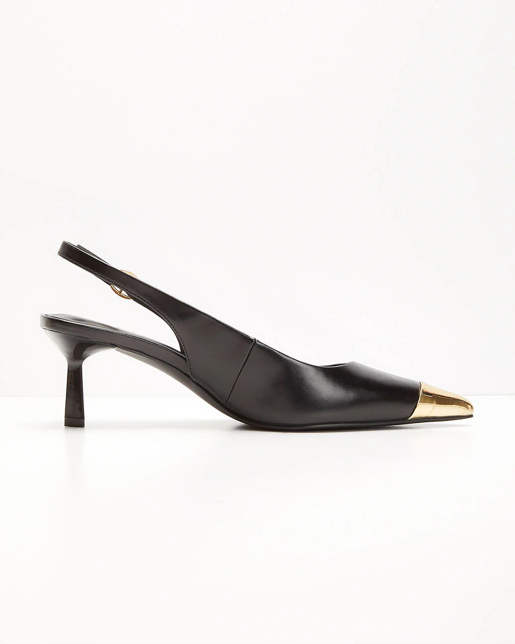The perfect pumps for work and play have arrived. The Denzel Metallic Tip Slingback Heels feature a...
