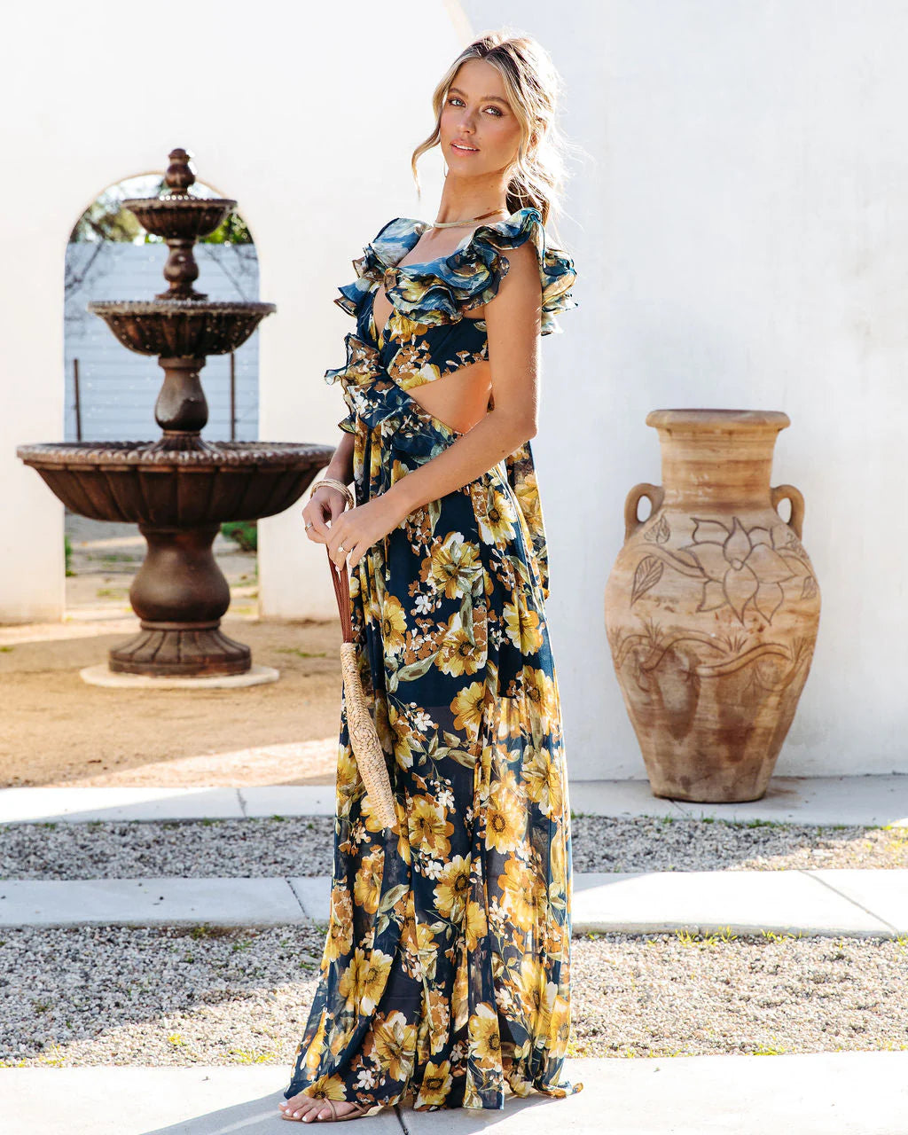 Self & Lining �100% Polyester and Lining �100% Rayon Dry Clean Maxi Length Plunging neckline Structured Waistband...