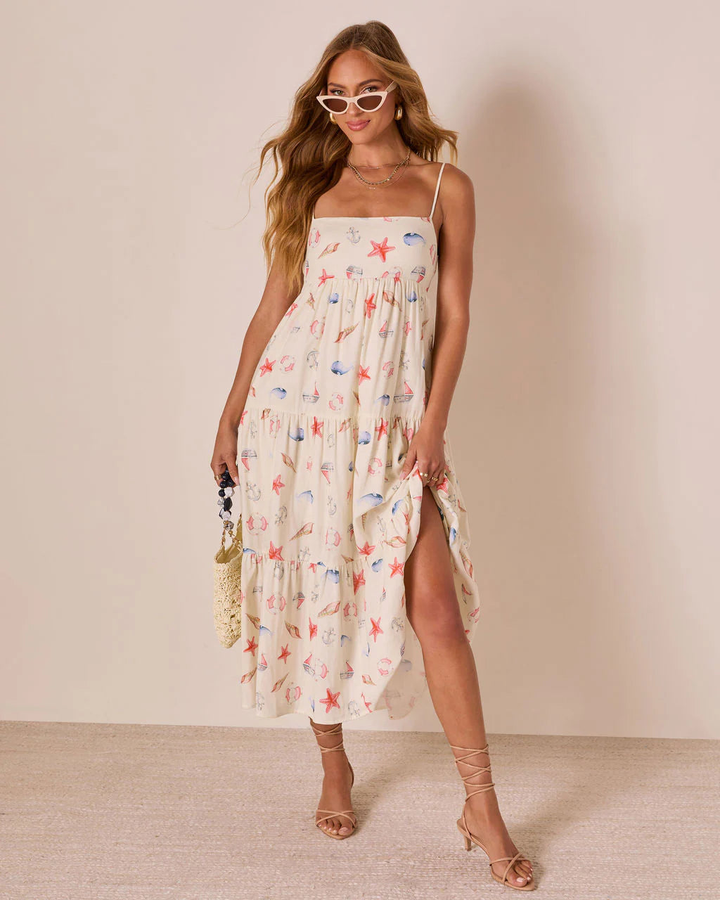 Set sail in style with the Harbor Days Nautical Print Maxi Dress. your go-to for breezy days and boat-side brunches. This tiered beauty features pleated jersey fabric that sways with every step. while adjustable straps and a smocked back panel keep the fit just right. Side slant pockets? Yes. please. Whether you're walking the boardwalk or sipping rosé dockside. the nautical print gives timeless coastal vibes with a modern. chic twist.