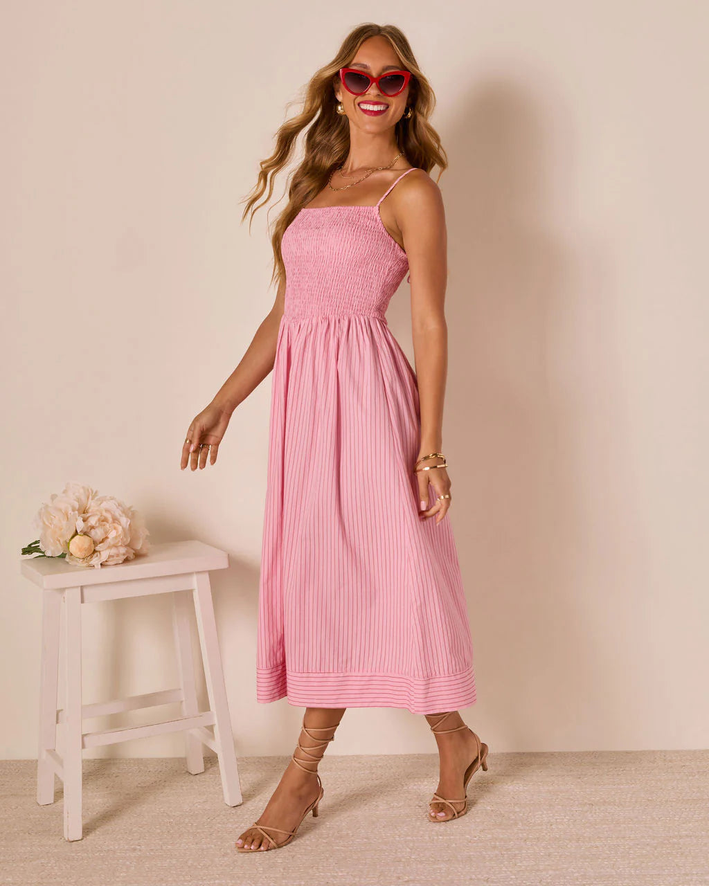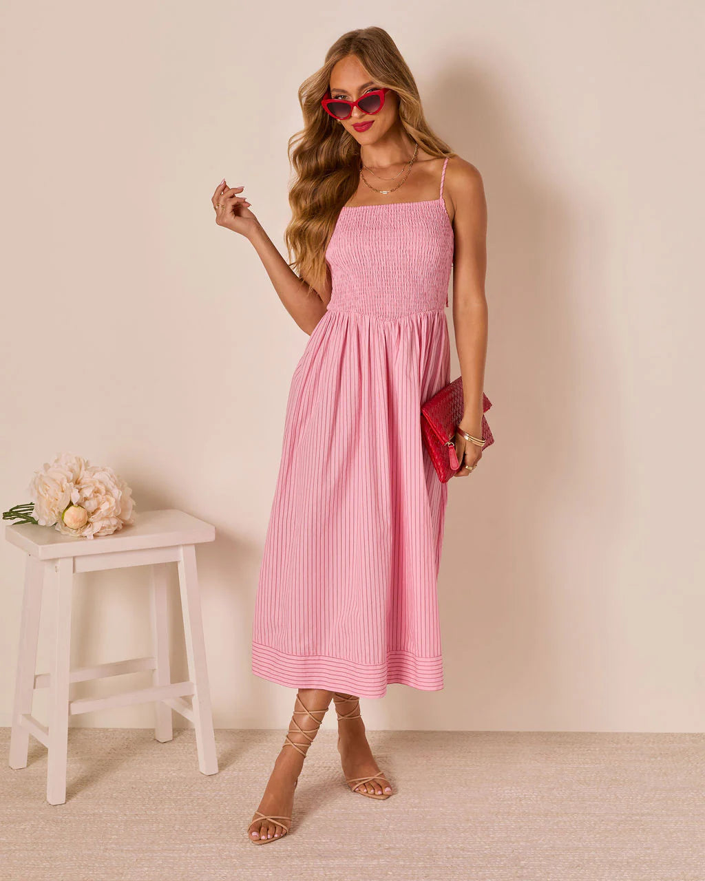 The Heartland Haze Pinstripe Maxi Dress is your ticket to effortless charm. With a breezy pinstripe lawn...