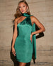 You belong on the red carpet wearing the Hollywood Satin Mini Dress that features a halter neckline with a built-in scarf detail. Smooth. shiny satin fabric takes form in a slip. mini-length silhouette that's finished with a back zipper closure.