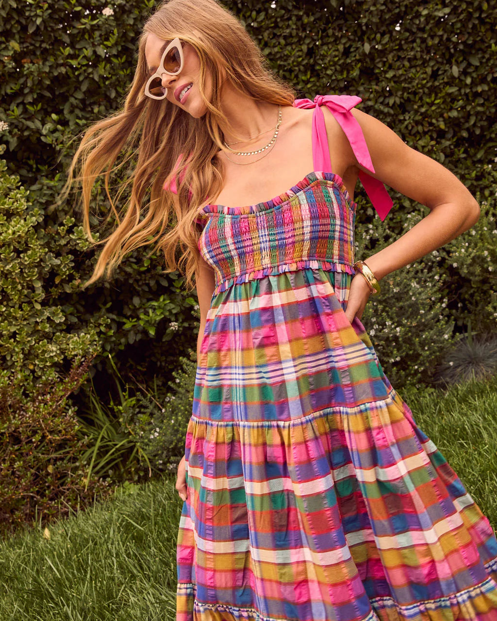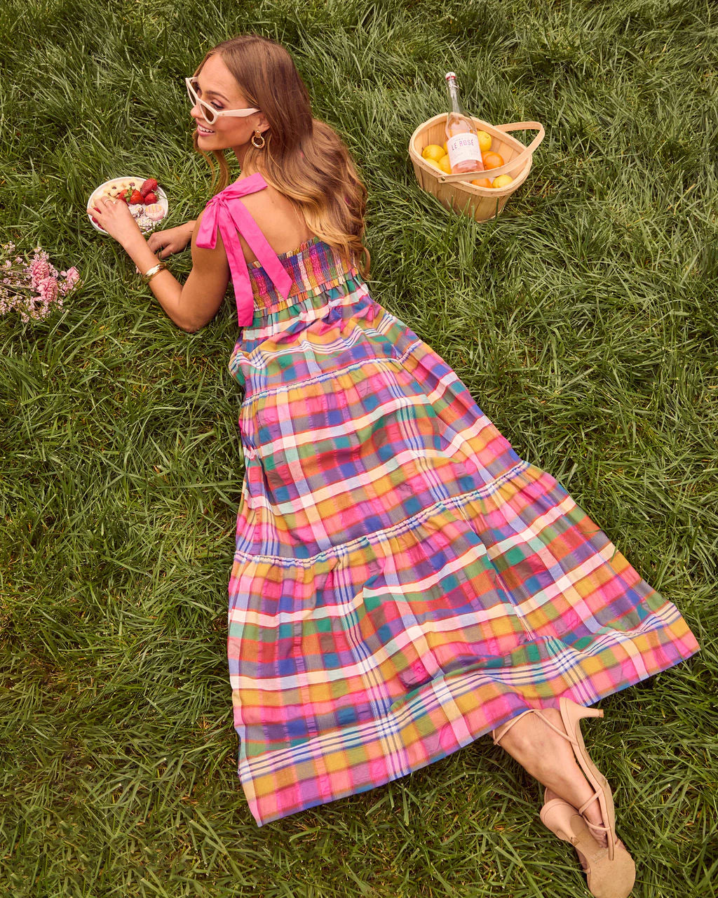 The Izie Plaid Tiered Maxi Dress is your breezy-daydream come to life. With its soft linen jersey...