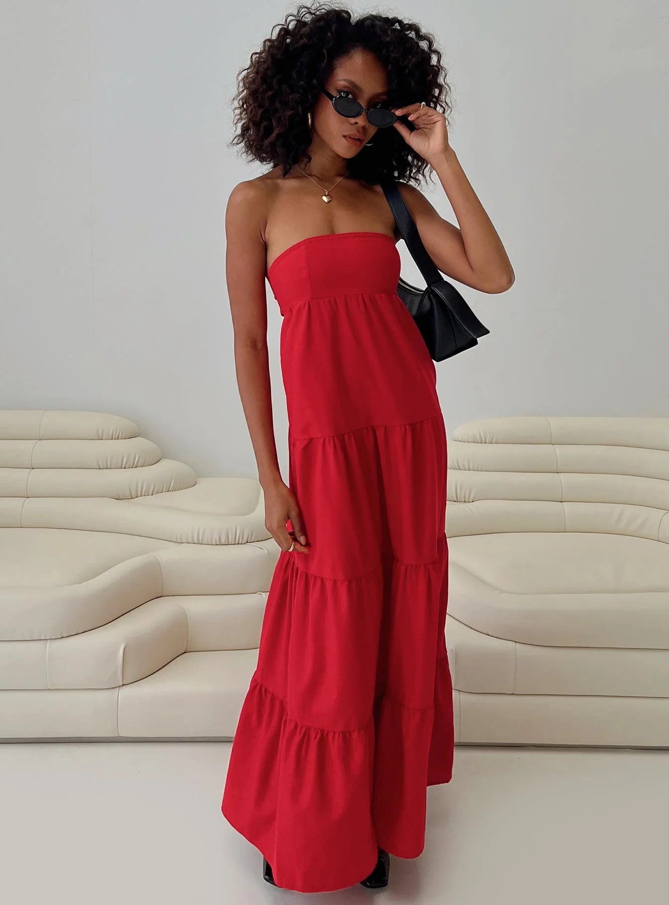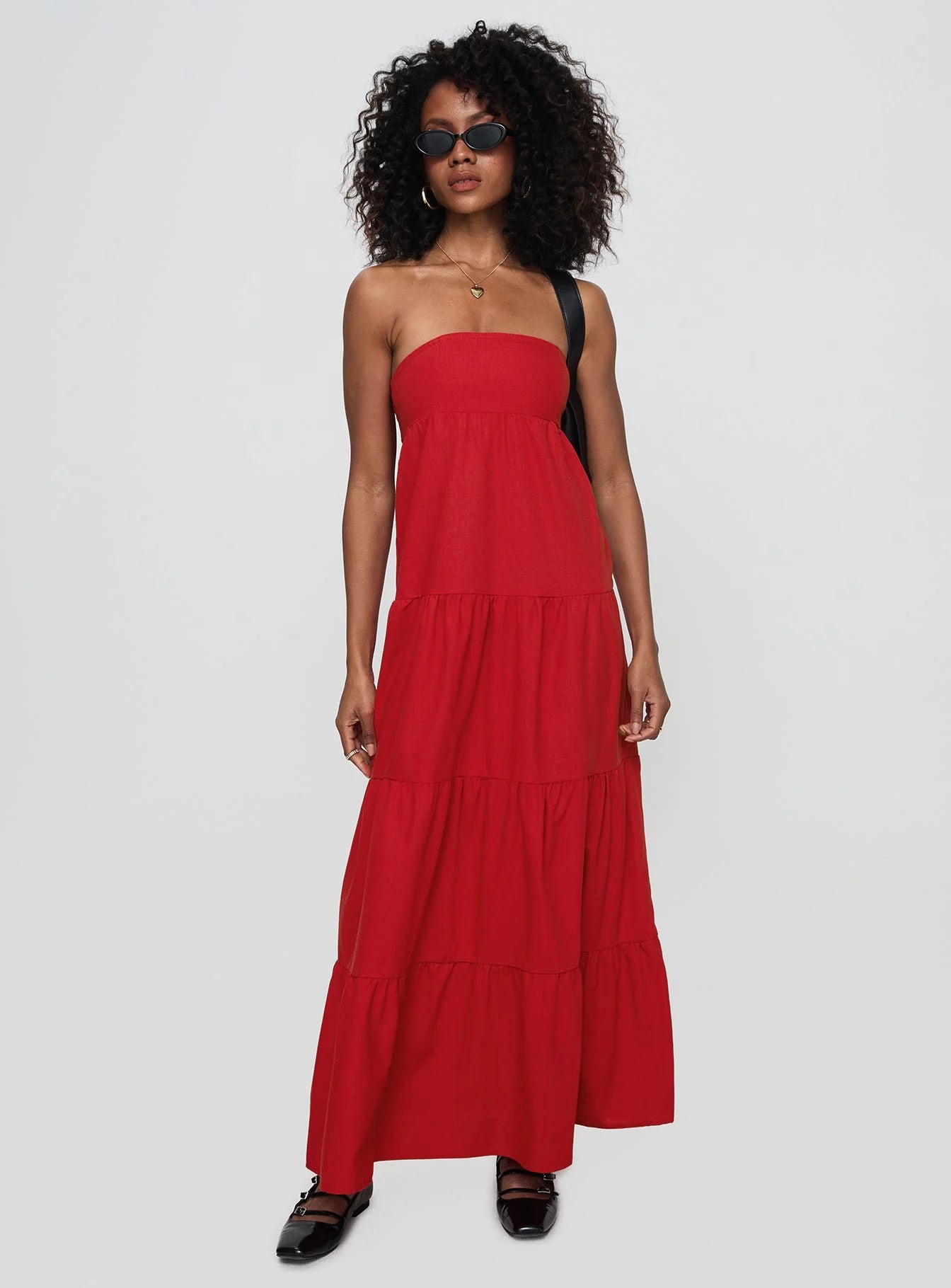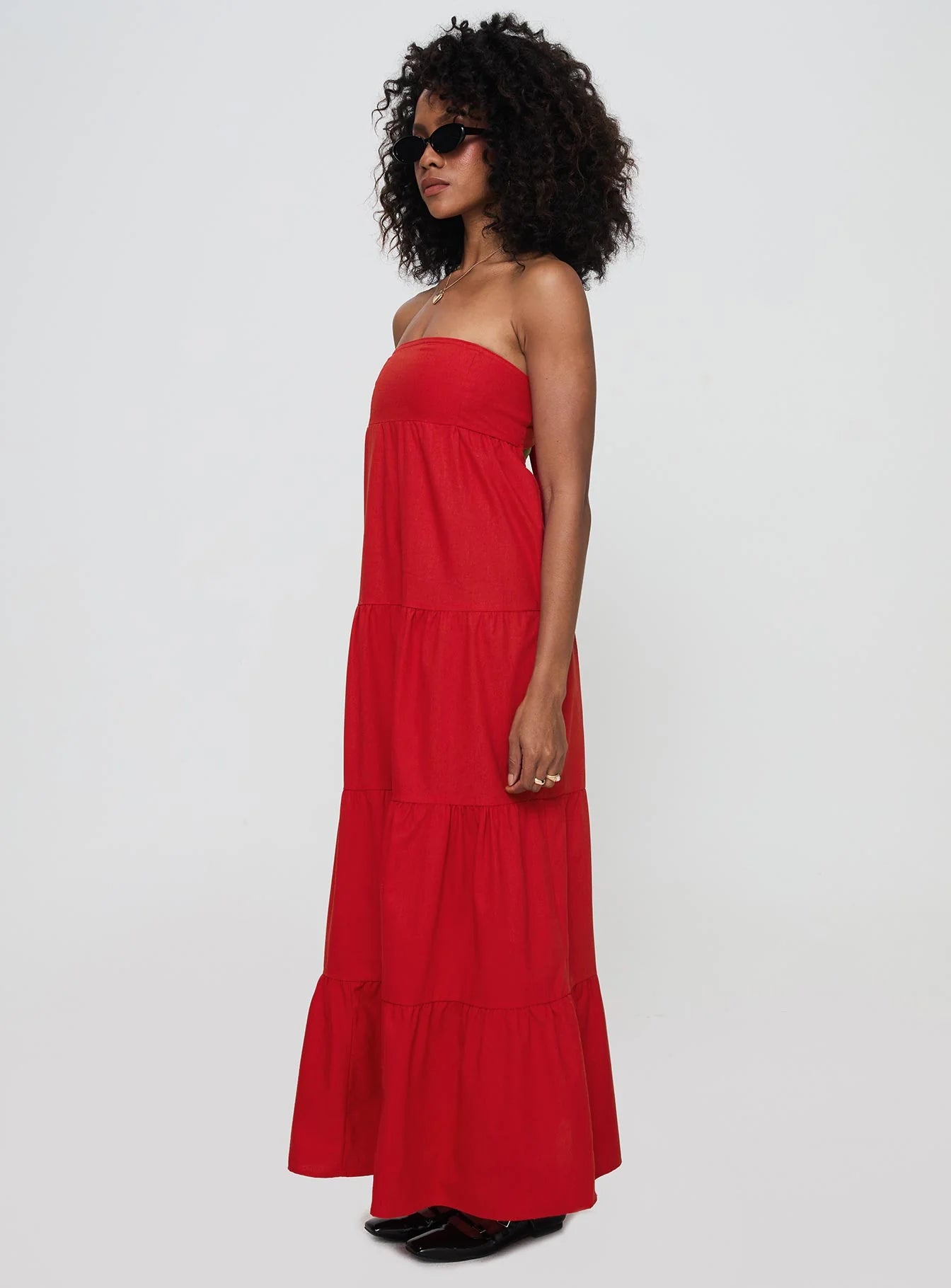 Maxi dress Linen blend material. straight neckline. strapless. elasticated band at bust & back. tie fastening at...