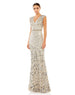 Mac Duggal 5505 Long Embellished V Neck Cap Sleeve Sequin Dress