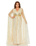 Mac Duggal 5804 Long Plus Size Sequined V Neck Cape Sleeve Dress